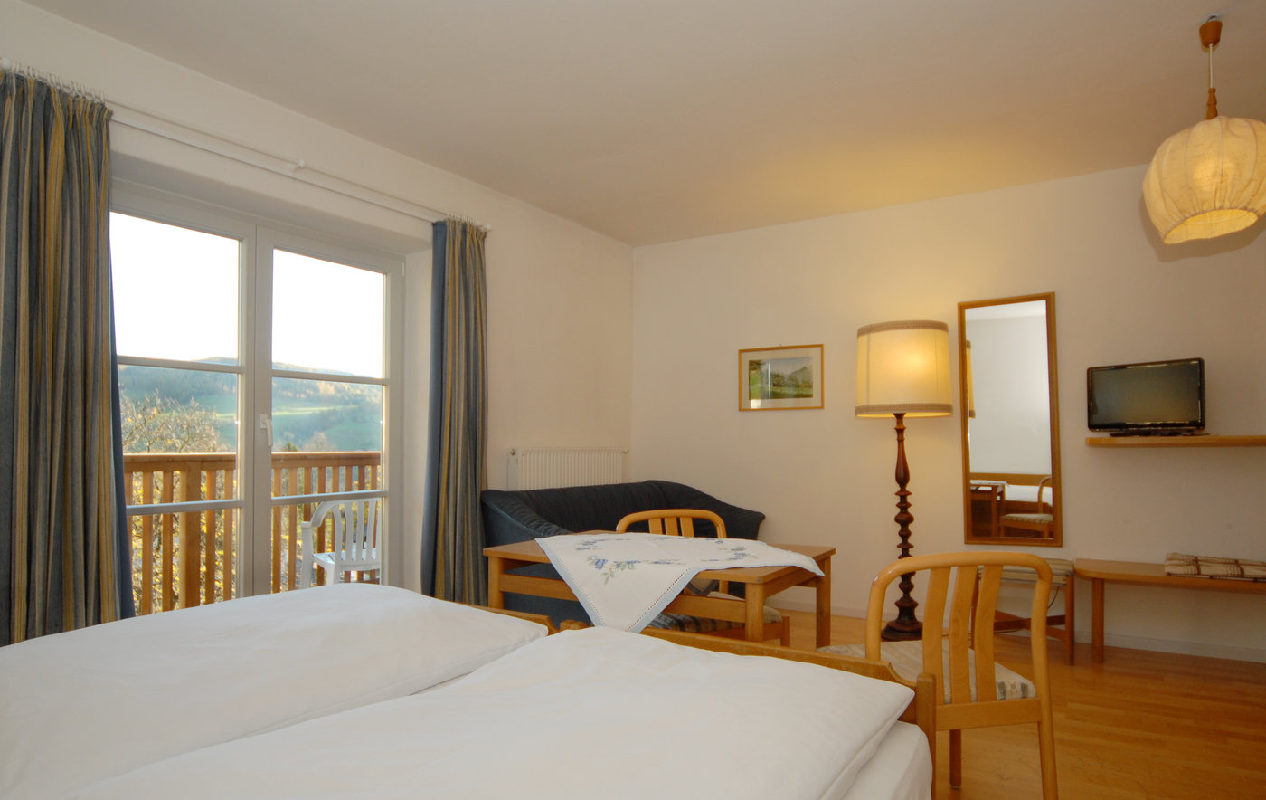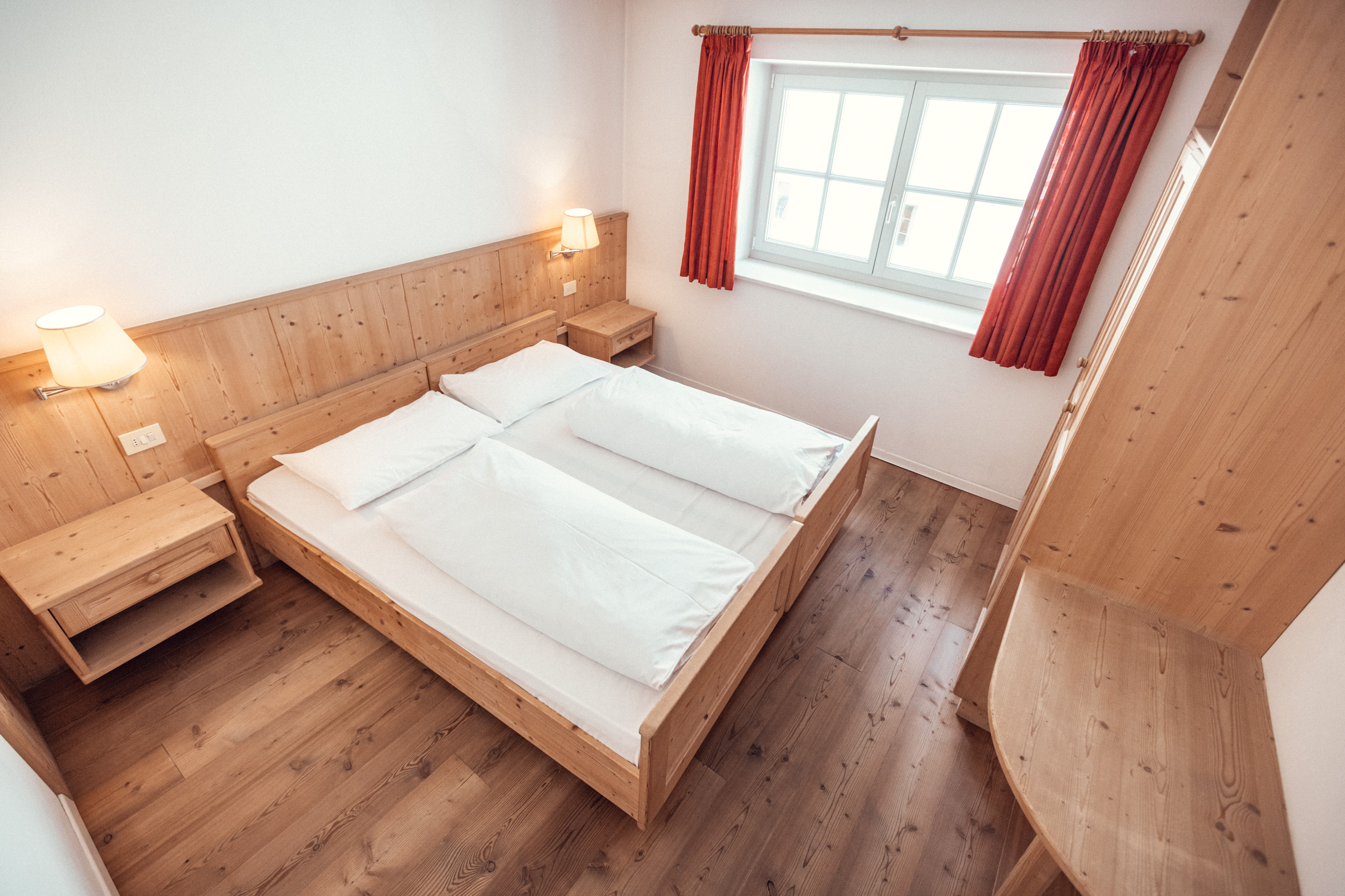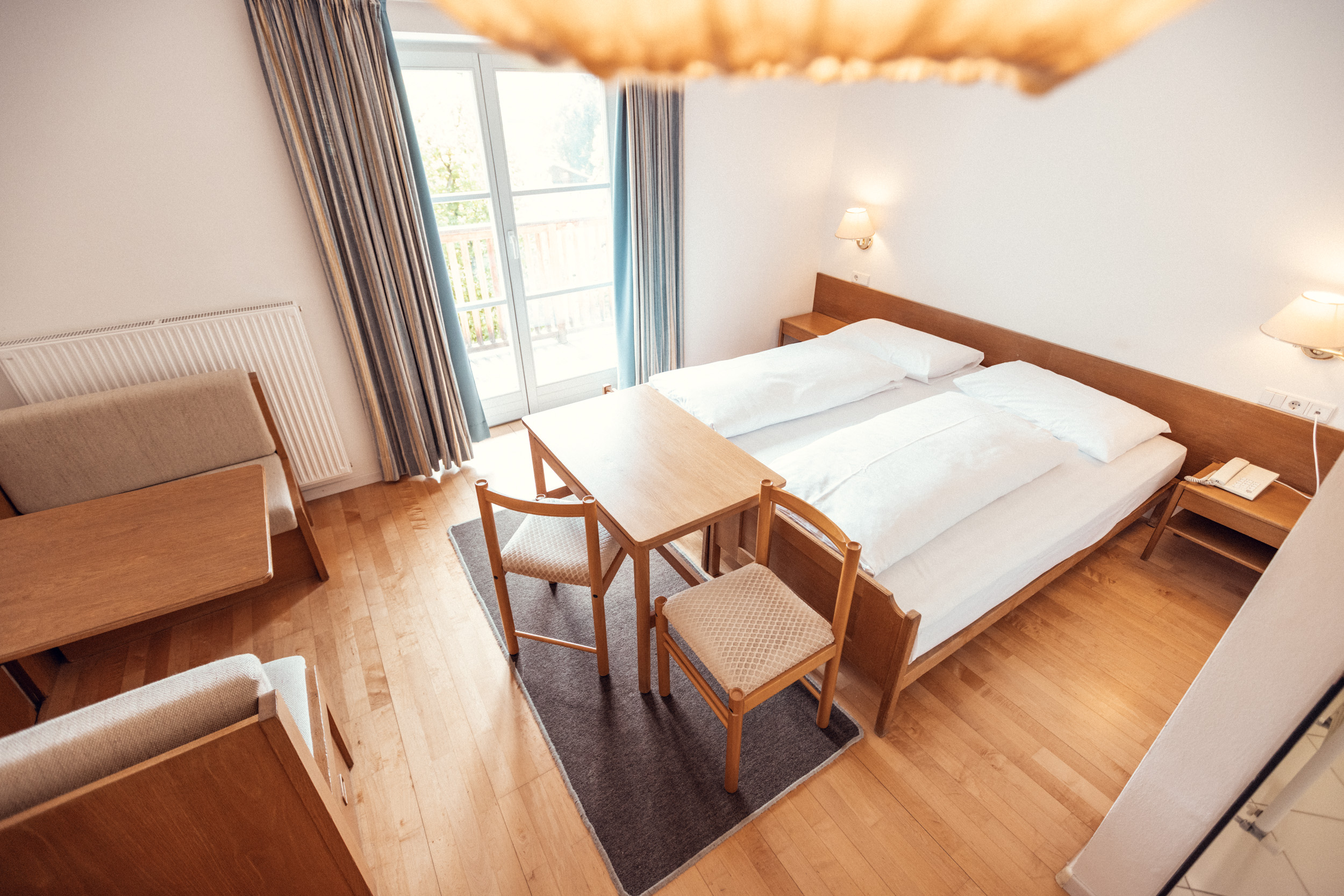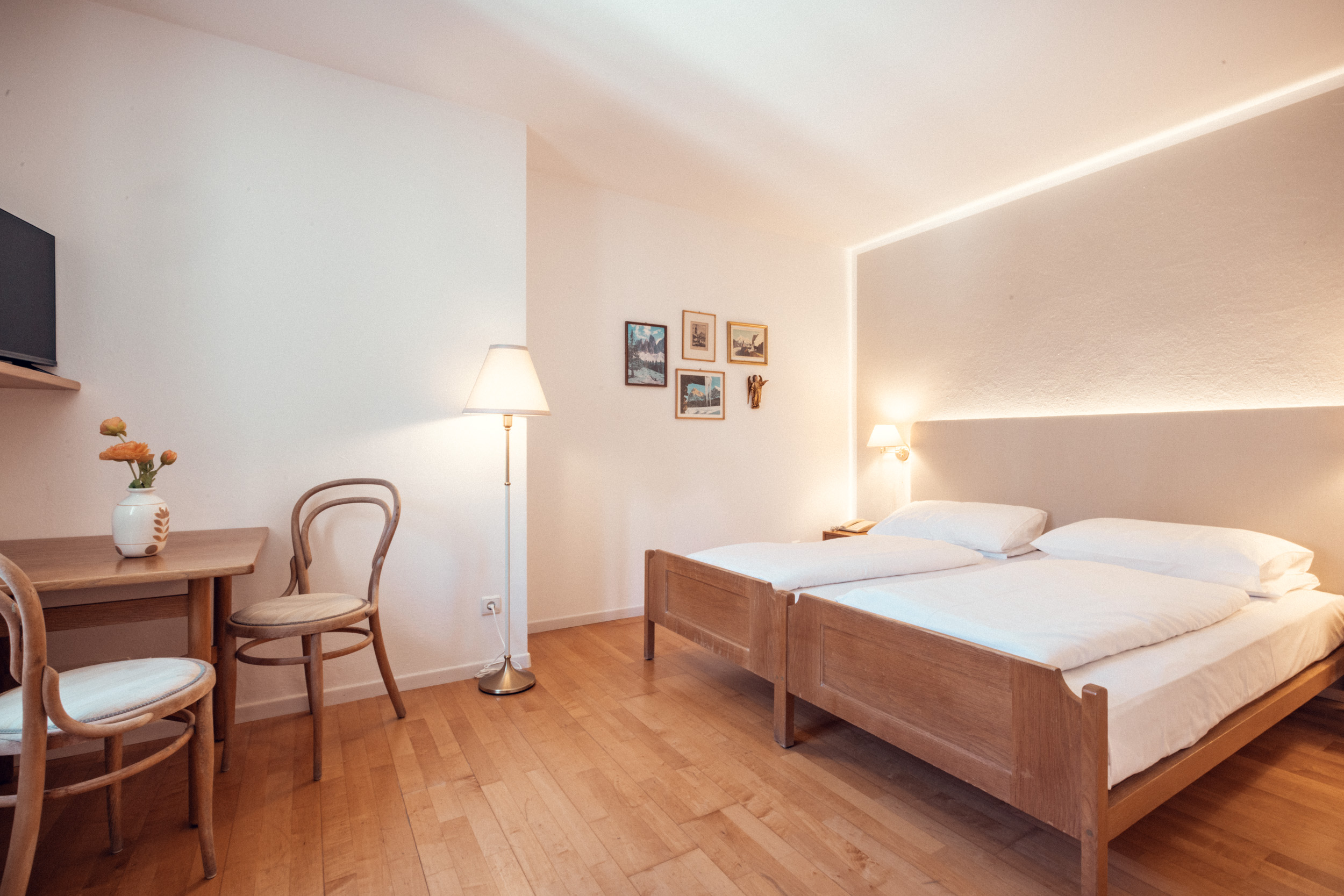 Le nostre camere sono arredate in modo semplice e funzionale. Le camere doppie standard di tipo B sono ideali per escursionisti o soggiorni brevi. Godetevi la tranquillità e lasciate che lo sguardo si perda sulla vista del pittoresco paese o delle maestose montagne.