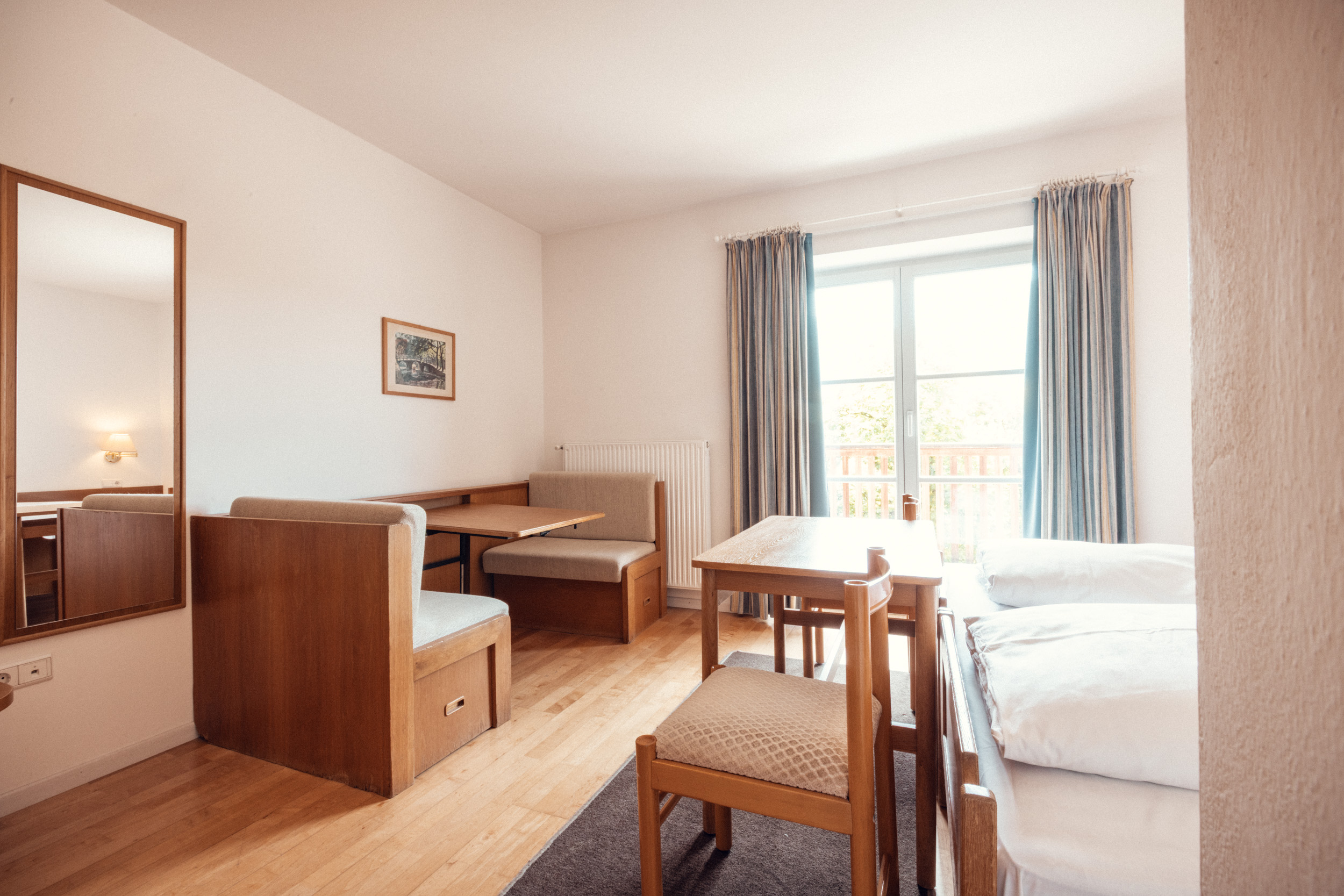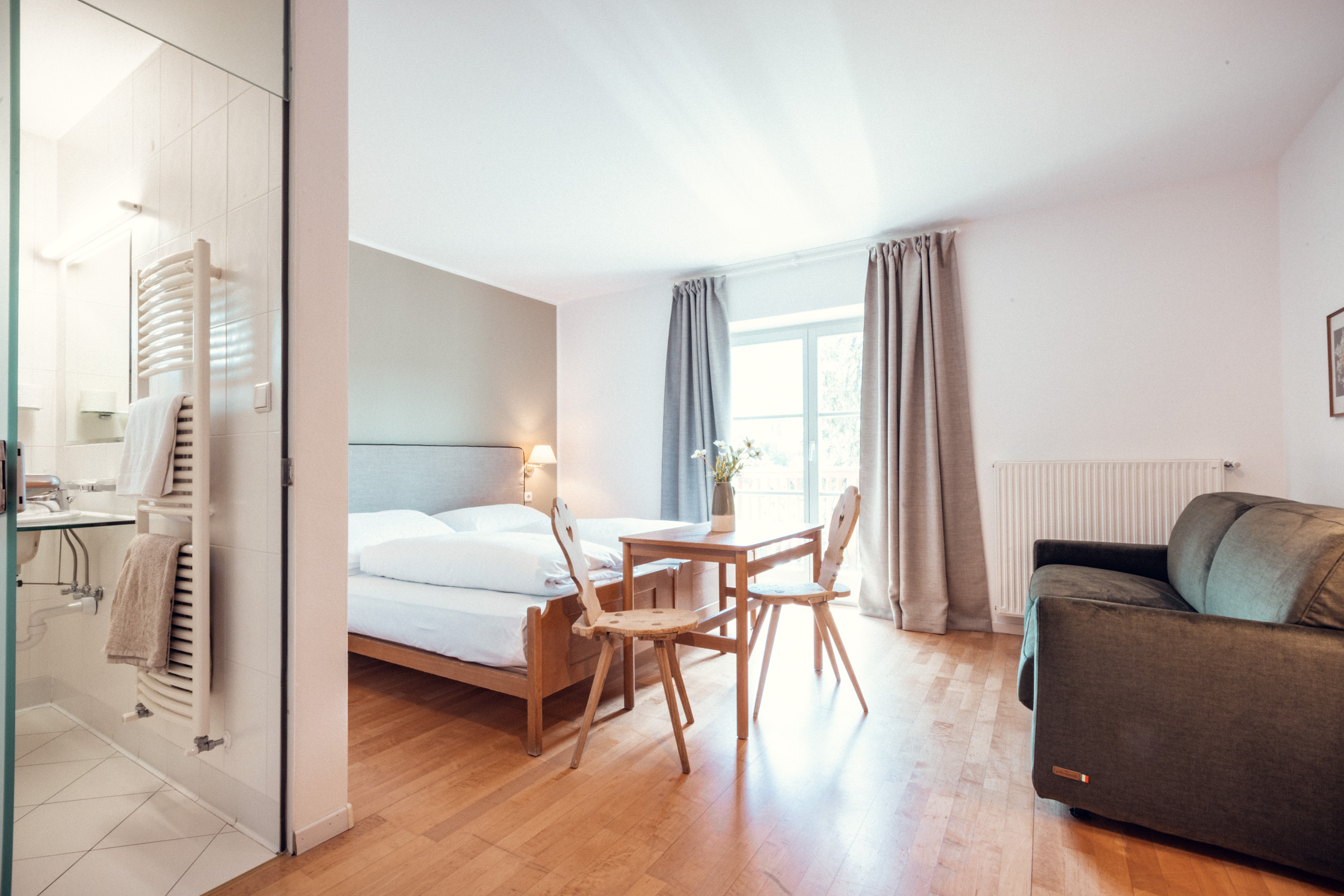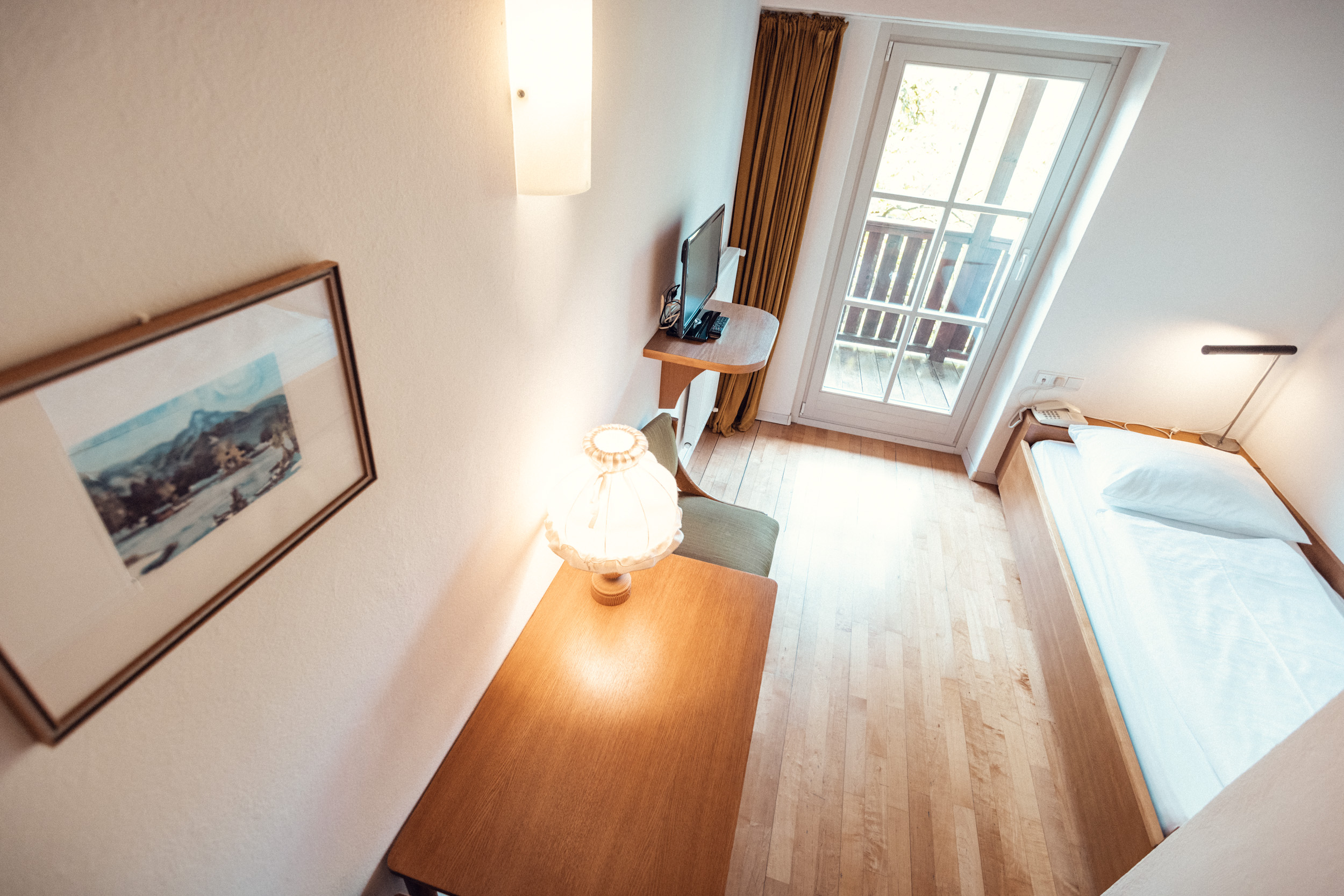 Le nostre camere singole offrono un’atmosfera tranquilla e accogliente, ideale per i viaggiatori singoli. Le camere, arredate in modo semplice e funzionale, sono perfette per escursionisti o soggiorni brevi. Lasciatevi incantare dal cinguettio rilassante degli uccelli o dalla vista maestosa dello Sciliar e delle Dolomiti, e godetevi momenti di completo riposo.